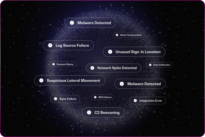 All signals routed into a single operational command point. Logs, events, and telemetry flow through the control layer for unified detection, deeper visibility, and an end to pointless noise.